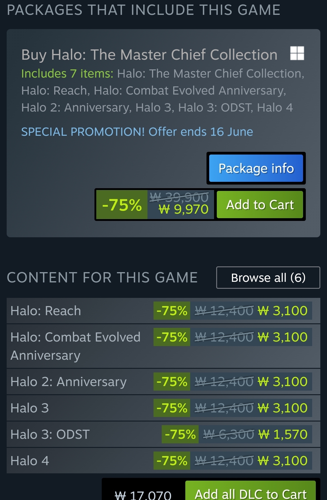 헤일로 시리즈 게임 6개. 스팀입니다.