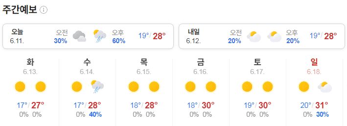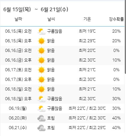 2023.6.11.일.~6.21.수 일기예보: 비 없음. 하지만 날씨 변덕스럴 수 있음/:/ 올여름 엘 니뇨?! (습하고 지리한 비) 본문