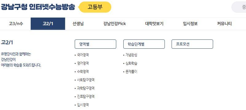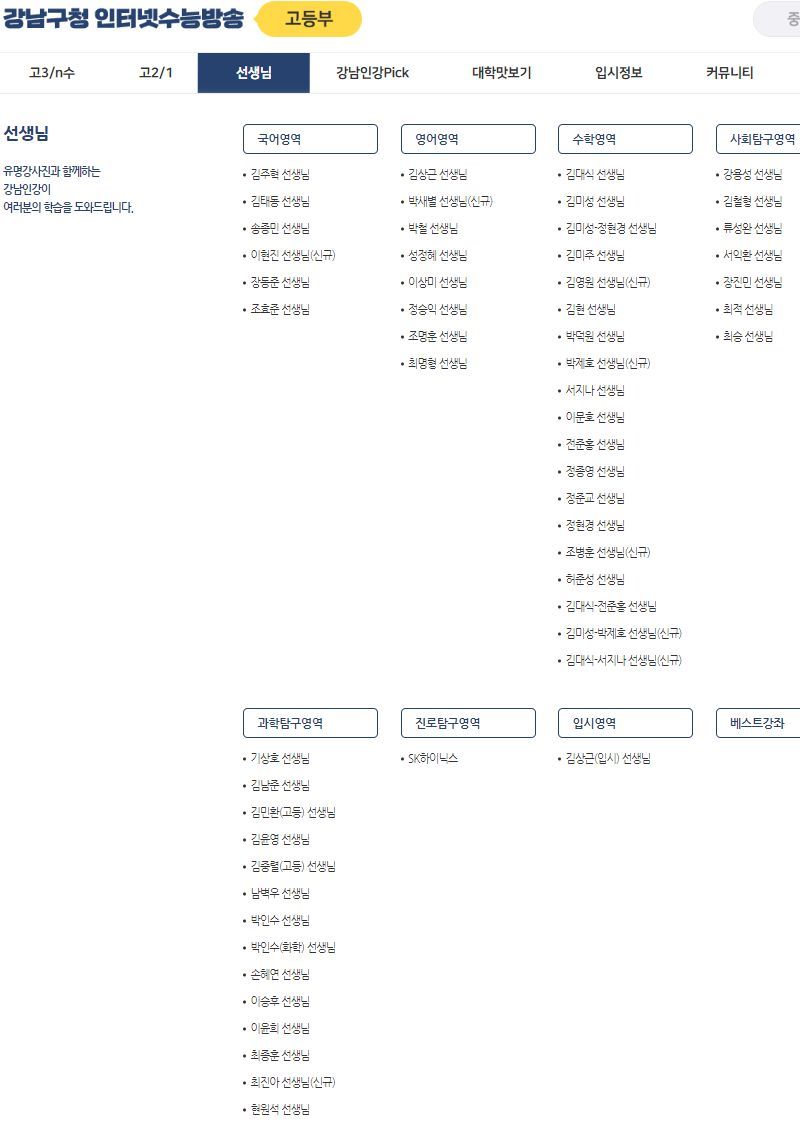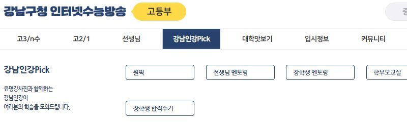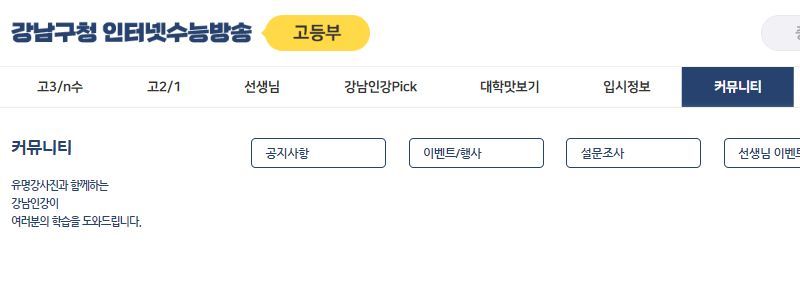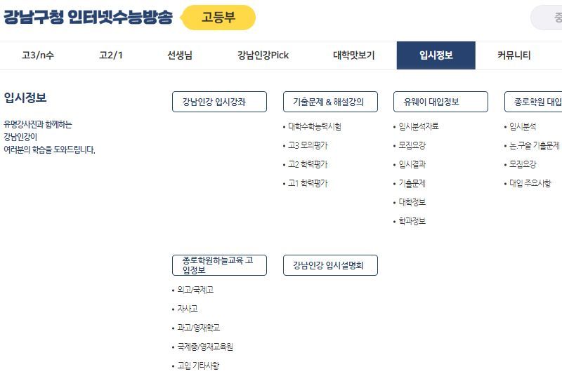 강남인강 (강남구청 인터넷수능방송) : 지역제한없음 (고등부, 중등부(+초6?) 인강) 본문