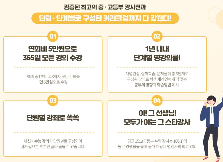 대표사이트는 고등부, 고등학생용 강의사이트입니다.