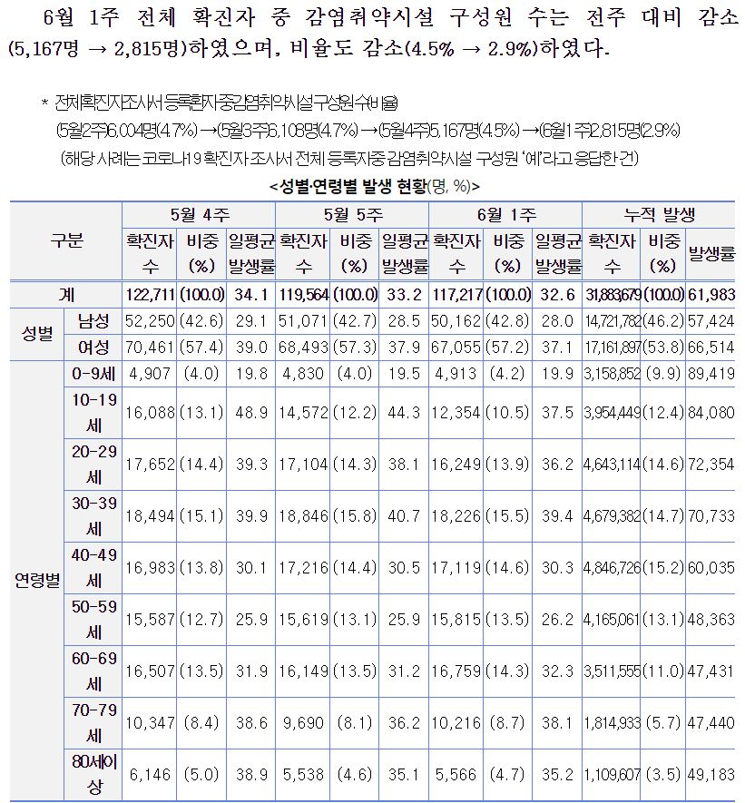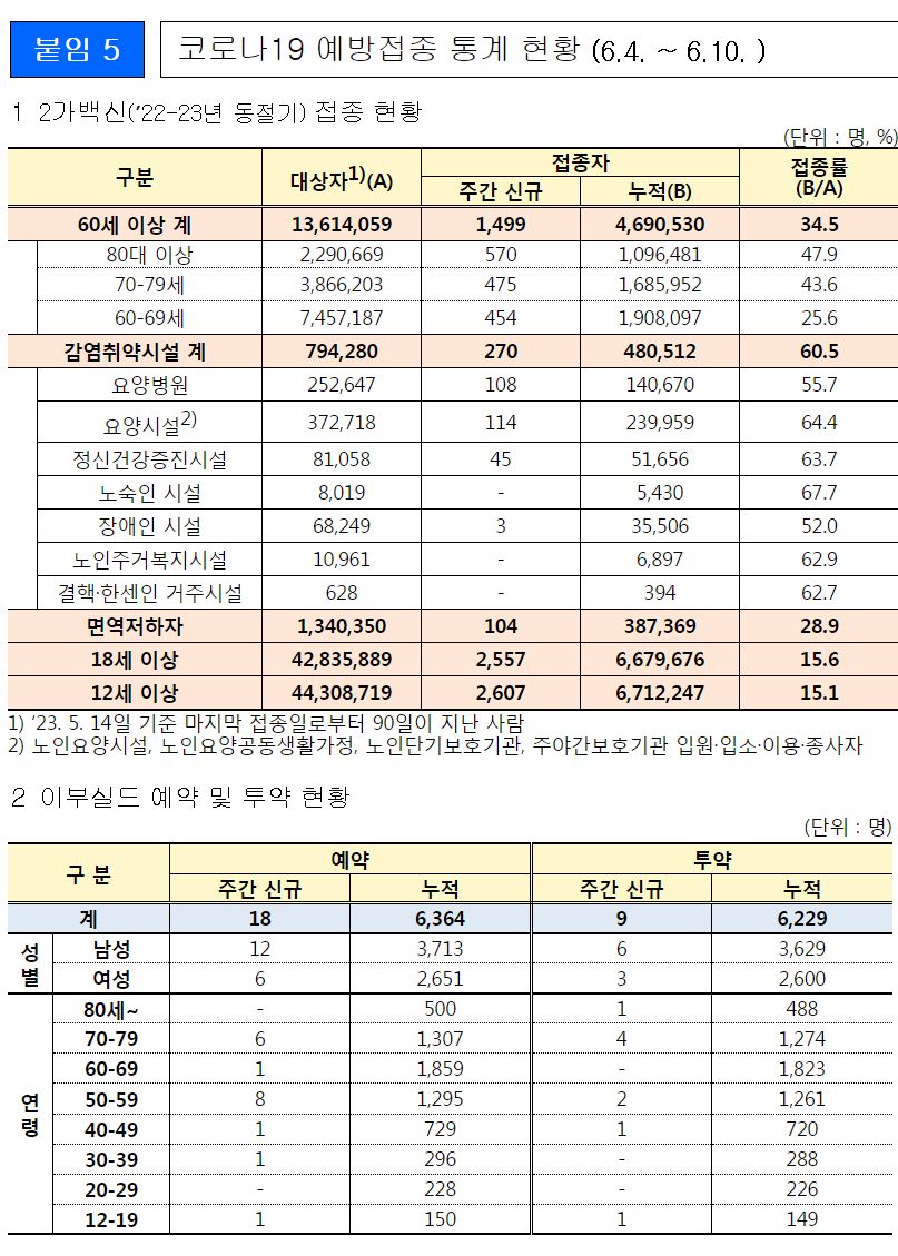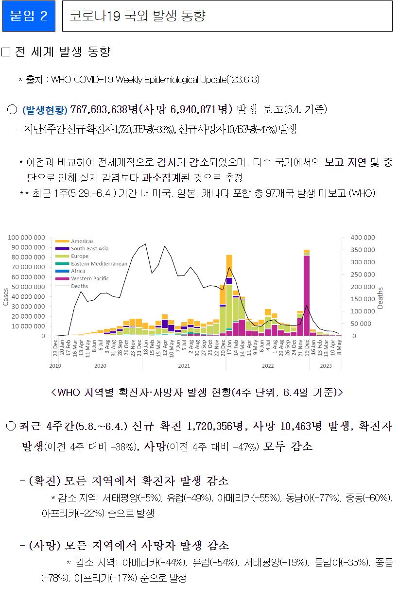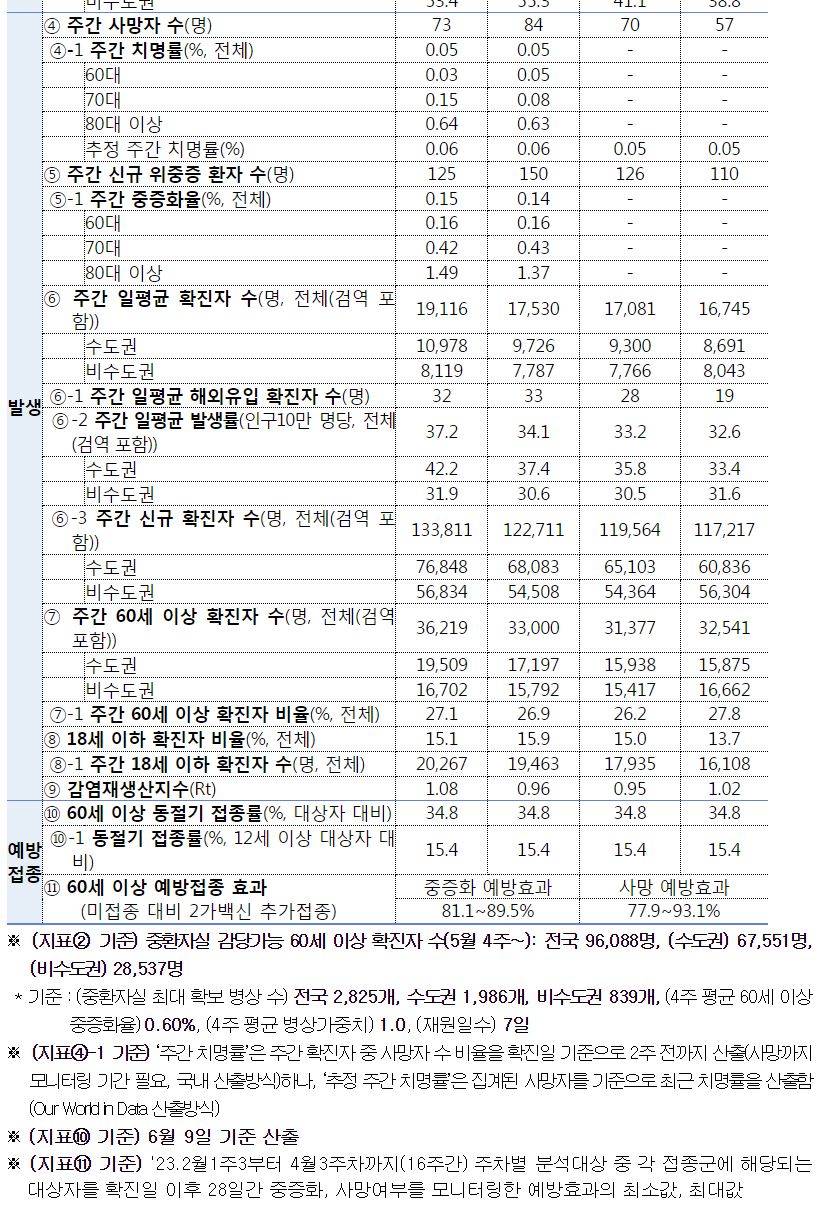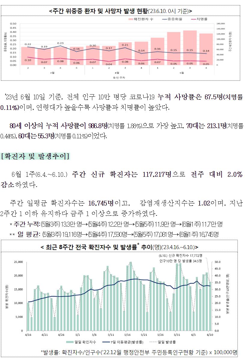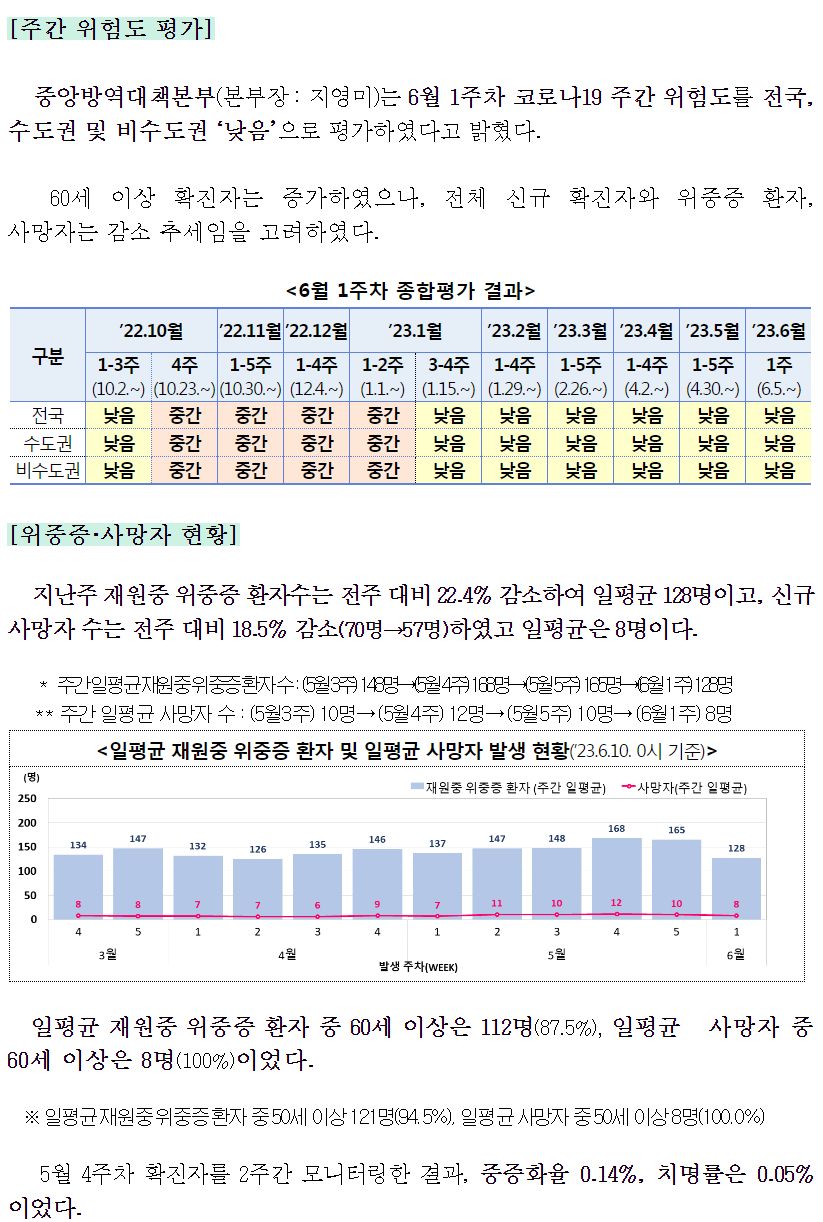 코로나19(2023.6.14.) 주간 발생 동향 및 주간 위험도 평가(6.4.∼6.10.) 본문