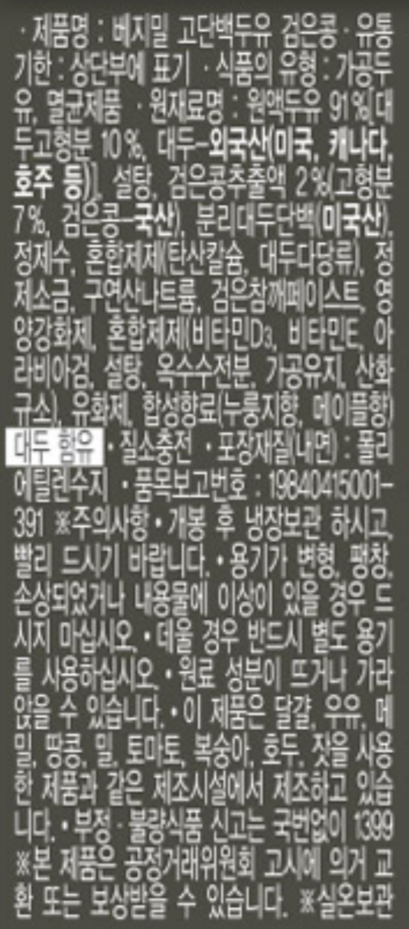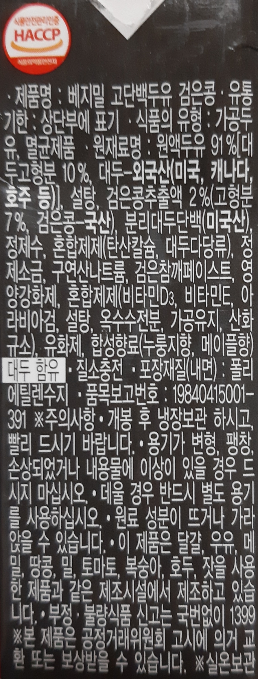 검은콩성분을 조금 넣은 고단백두유.