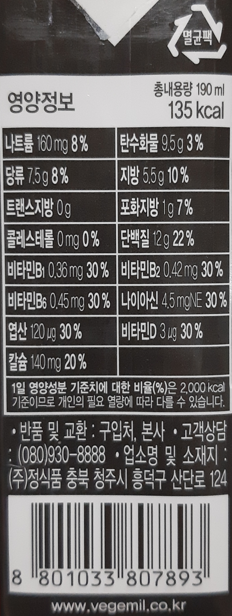 정식품 베지밀 고단백두유(검은콩) 본문