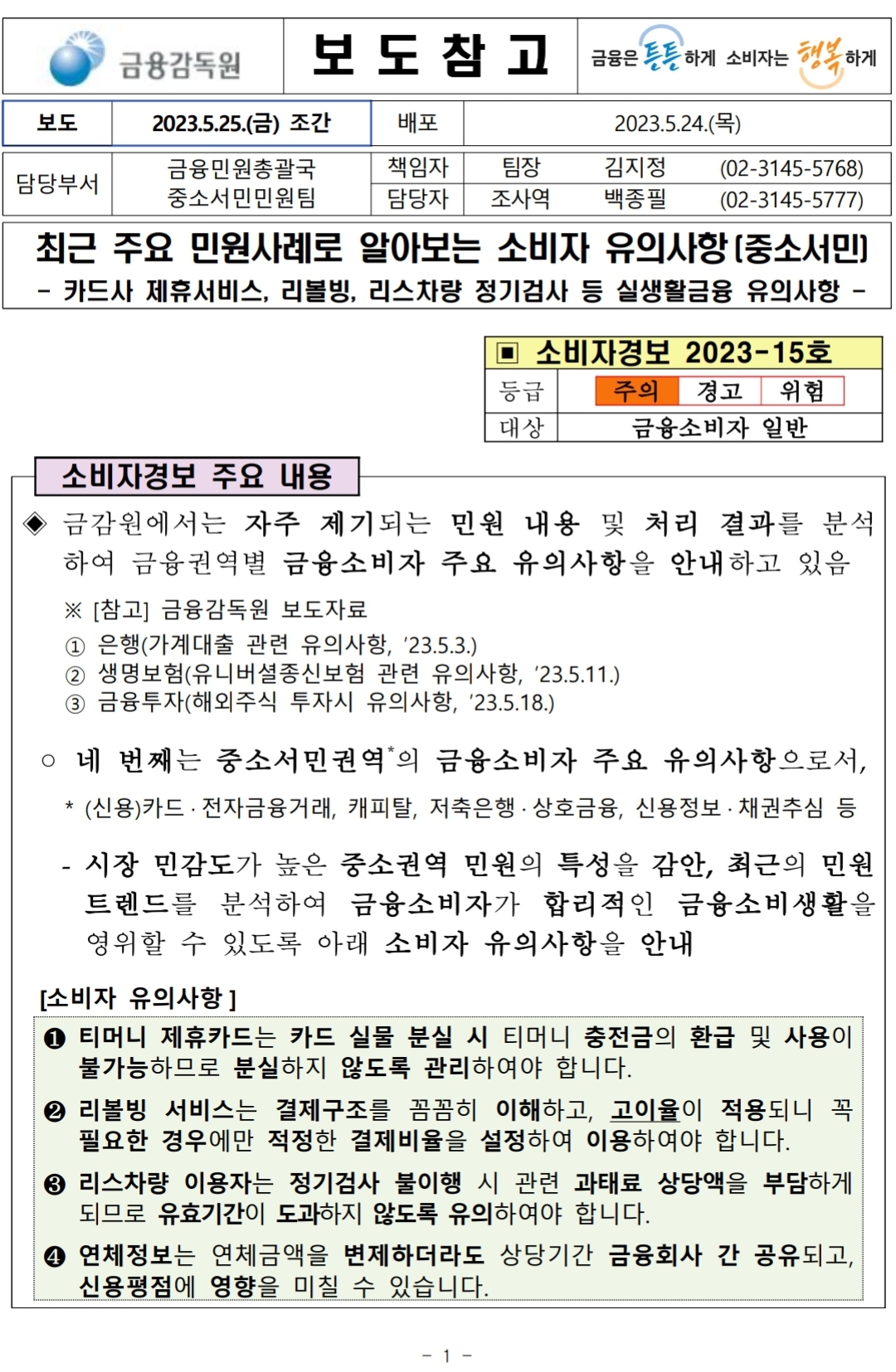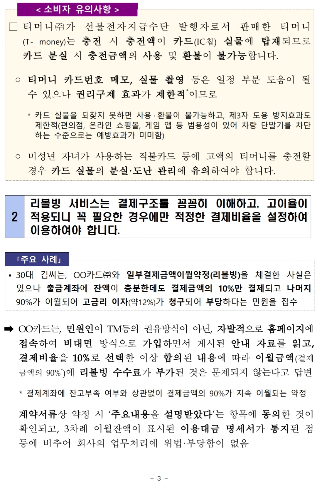 ■ 제휴카드, 리볼빙 등 실생활금융 유의사항 [금융감독원 소비자경보 2023-15호]