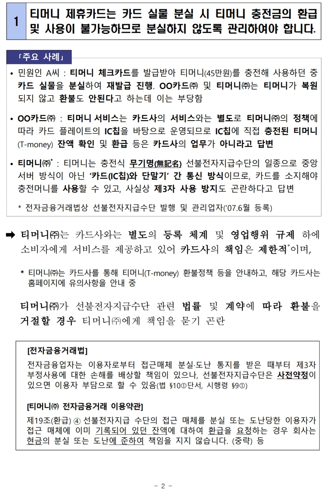 는 카드 실물 분실 시 티머니 충전금의 환급 및 사용이 불가능하므로 분실하지 않도록 관리하여야 합니다.