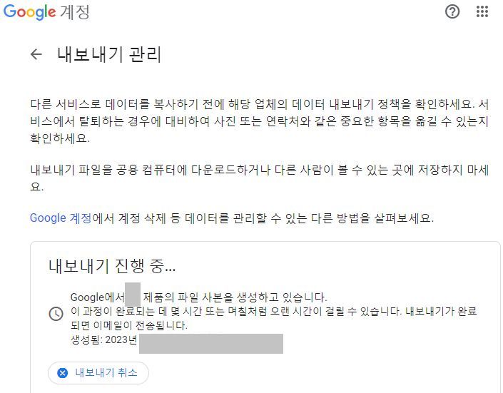 * 저장장소를 비워줄 때는 구글 테이크아웃(Google Takeout) 내보내기 기능 활용.