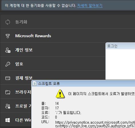 MS 엣지(Microsoft Edge) 웹브라우저는, 윈도우7에서 MS계정로그인 불가 (스크립트 에러) 본문