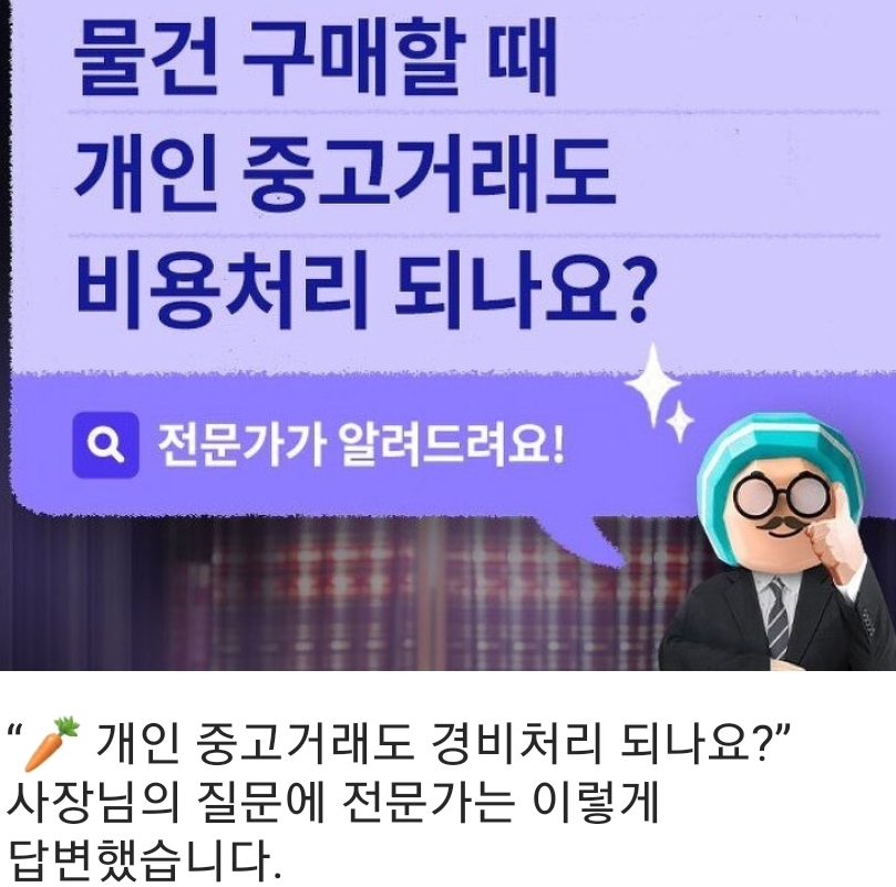 개인에게 중고물품 구입시 경비처리는 일부 가능할 수도 있지만 어렵다 (배민외식업광장) 본문