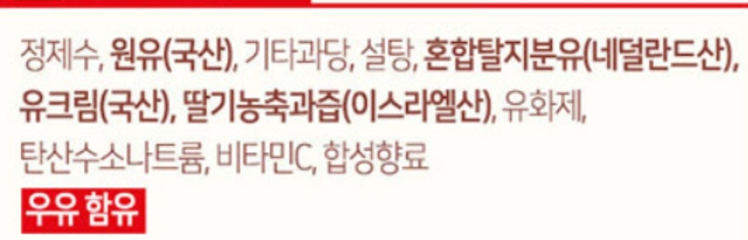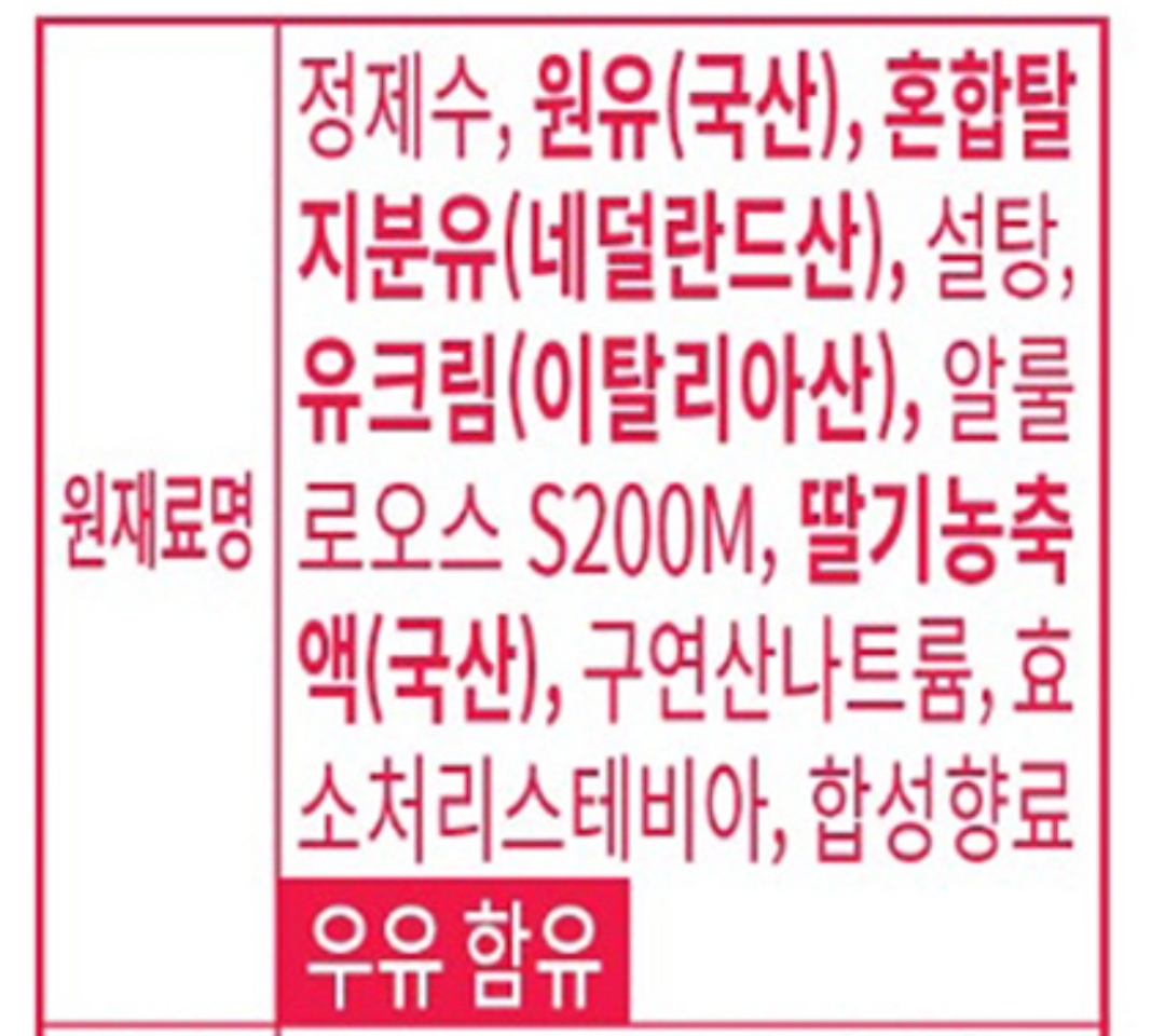몇몇 딸기우유의 성분표 본문
