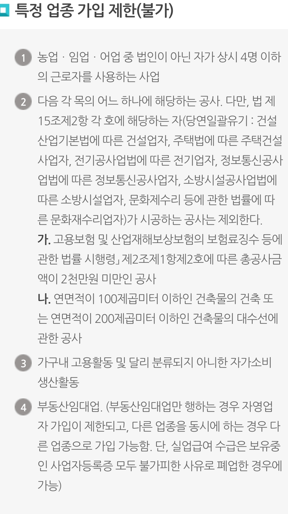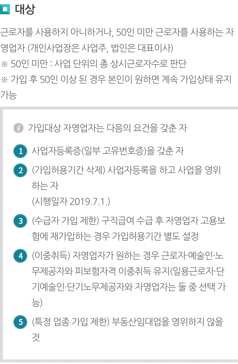 대상 근로자를 사용하지 아니하거나, 50인 미만 근로자를 사용하는 자영업자 (개인사업장은 사업주, 법인은 대표이사) ※ 50인 미만 : 사업 단위의 총 상시근로자수로 판단 ※ 가입 후 50인 이상