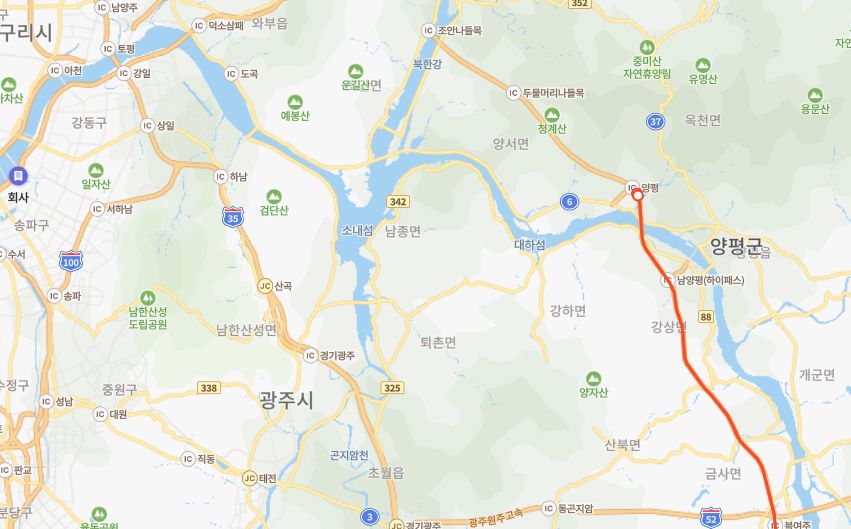 그리고 이 도로는 지금도 양평군을 관통합니다. 만약 중부내륙고속도로의 통행량이 남한강 이남인 강상면에서 서울로 바로 들어가면, 일각에서 말하는 '6번 국도의 교통체증'은 크게 줄어들 수 있을 겁니다. 아무렴 서울-강원 통행량이 중부고속도로 통행량보다 더 많다고 주장하지는 않겠지요.
