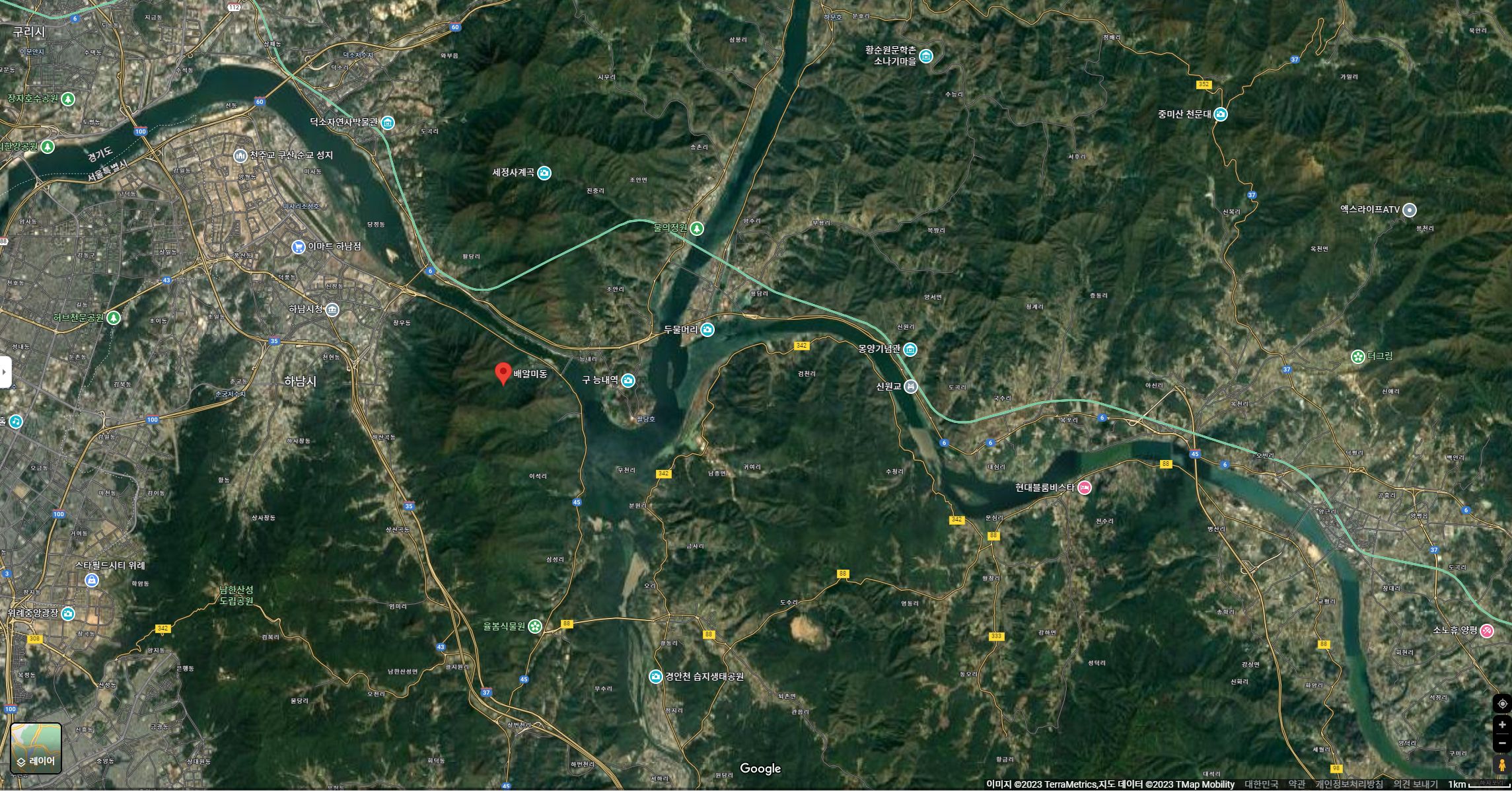 먼저, 이 지역의 지형과 개발상태입니다. 출처는 구글지도입니다.