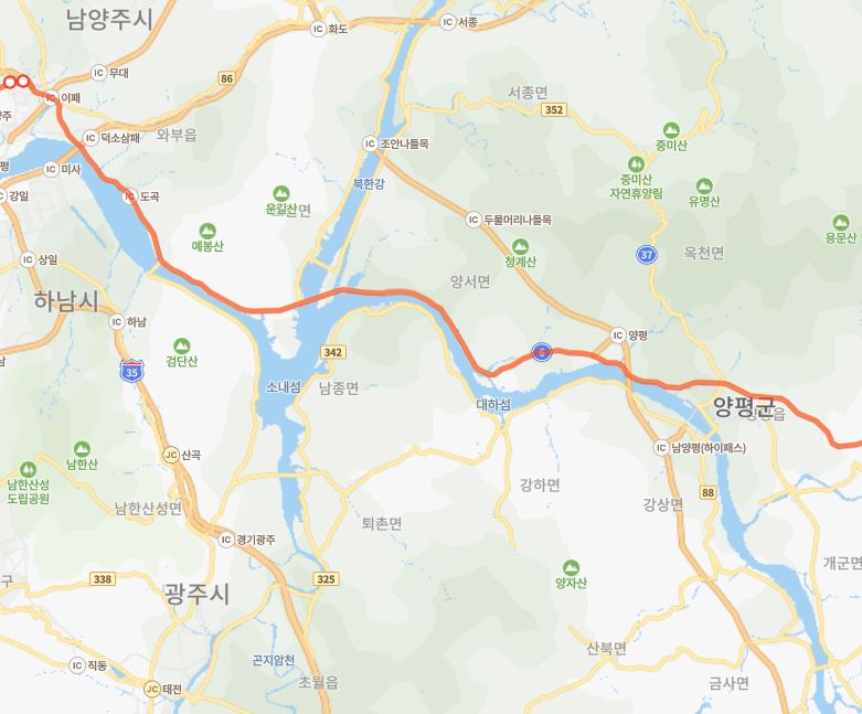 요즘 제시된 B안은 중부내륙고속도로의 종점근처, 남한강 이남인 강상면에서 갈라져 바로 하남시와 서울까지 연결됩니다. 변경안은 남한강을 건너지 않고, 둘러가며 다른 간선도로 차선을 먹지도 않습니다. 저는 이쪽이 직관적이라고 생각하는데요.