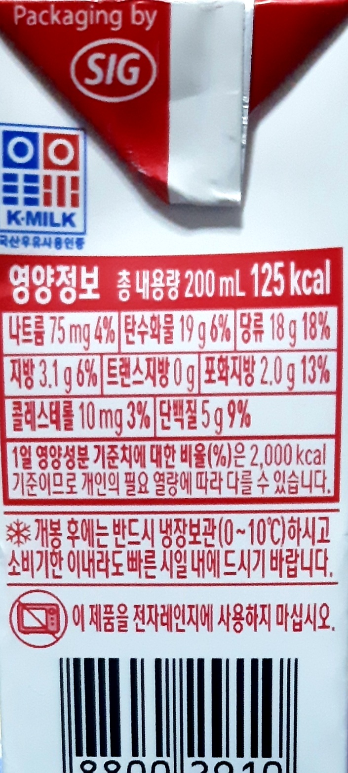 한 팩 200ml에 125칼로리입니다.