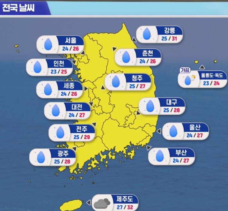 - 내일(14일) 아침최저기온은 23~26도, 낮최고기온은 25~31도가 되겠습니다.