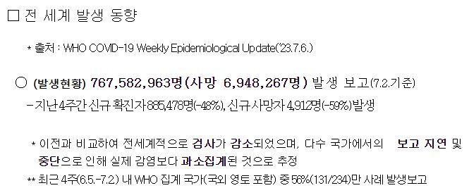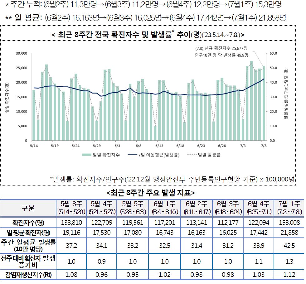 코로나19(2023.7.12) 주간 발생 동향 및 위험도 평가(7.2.~7.8.) 본문