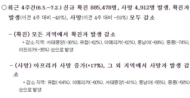 코로나19 주간 발생 동향(7.2.∼7.8.)