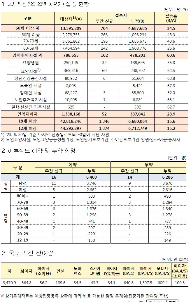 코로나19 예방접종 통계 현황 (7.2.~7. 8.)