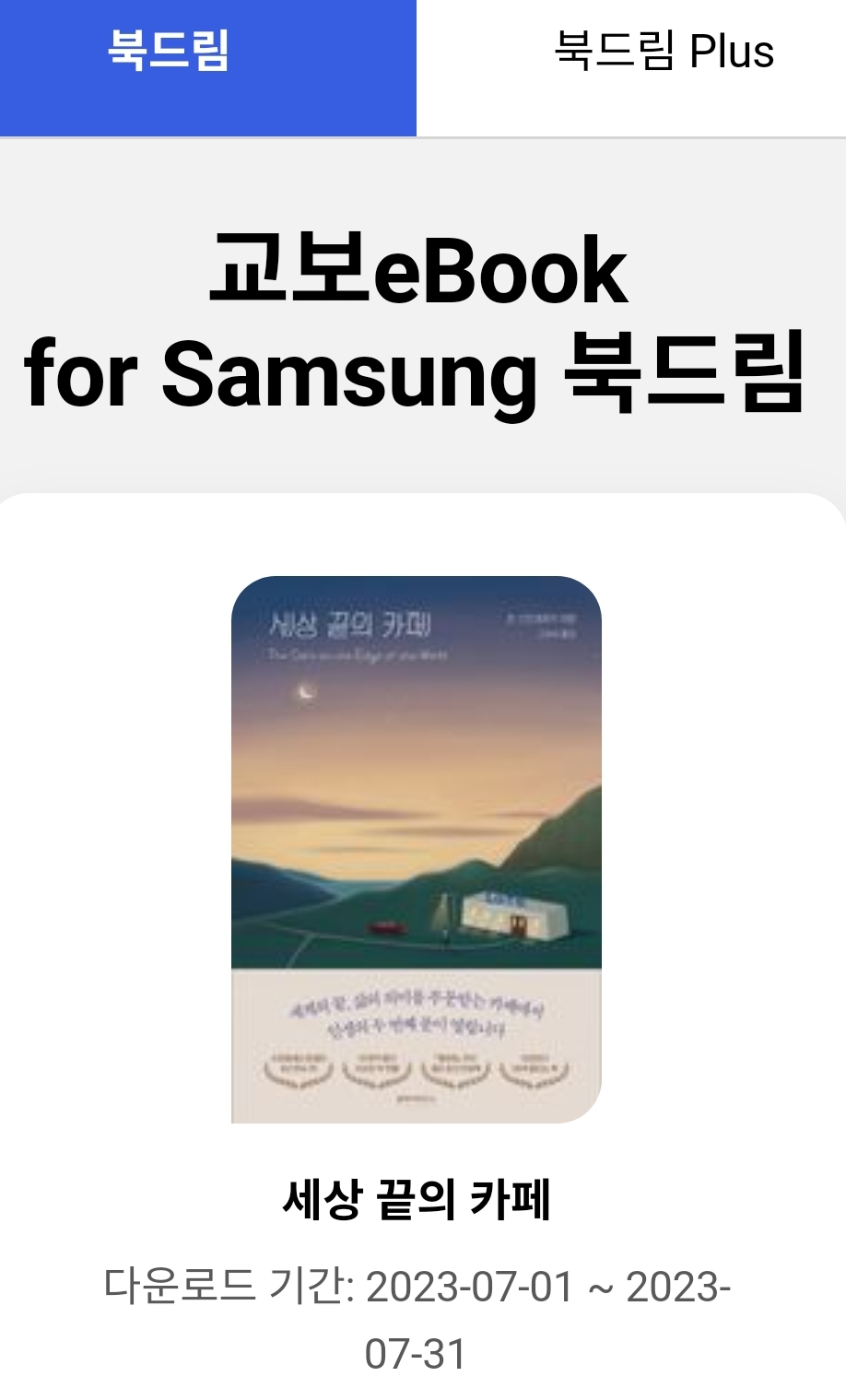 삼성 갤럭시 단말기 이용자라면 무료로 볼 수 있습니다. 180일 대여북.