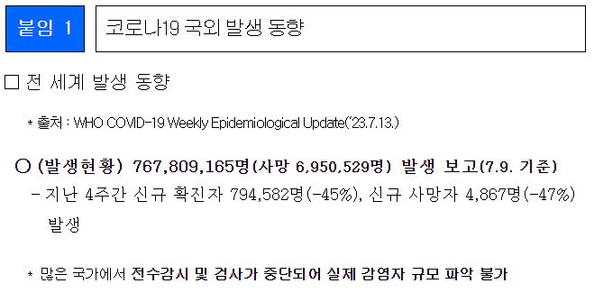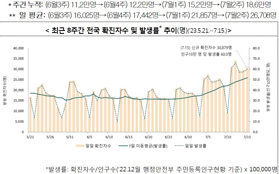 | 코로나19(2023.7.26) 주간 확진자 전주 대비 35.8% 증가 (0) | 2023.07.29 |