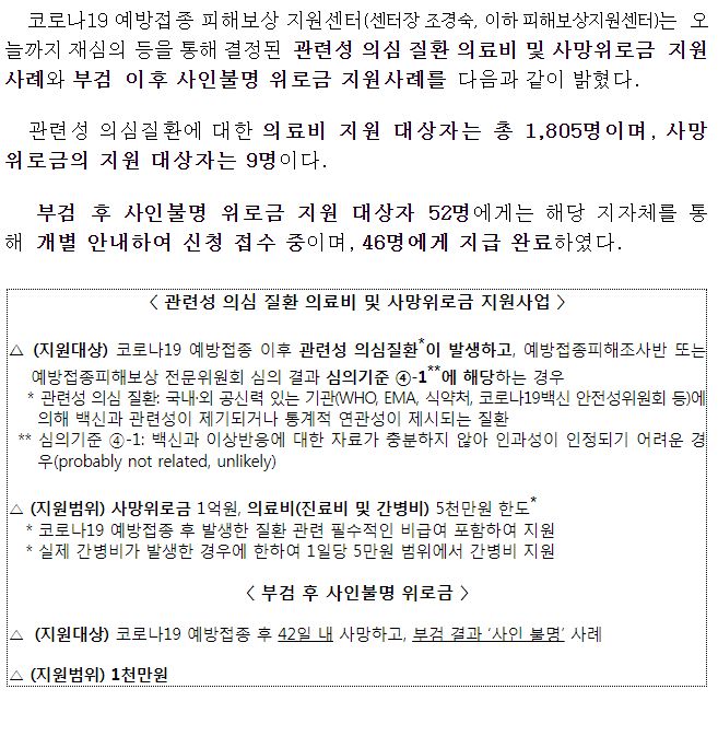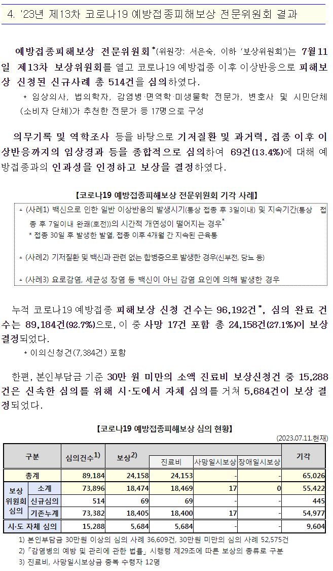 '23년 제13차 코로나19 예방접종피해보상 전문위원회 결과