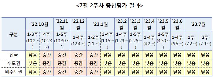 코로나19 주간 위험도 평가(7. 9.∼7. 15.) : 낮음