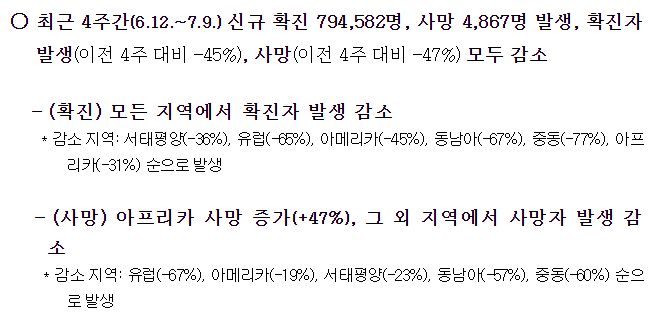 코로나19 주간 발생 동향(7.9.∼7.15.)