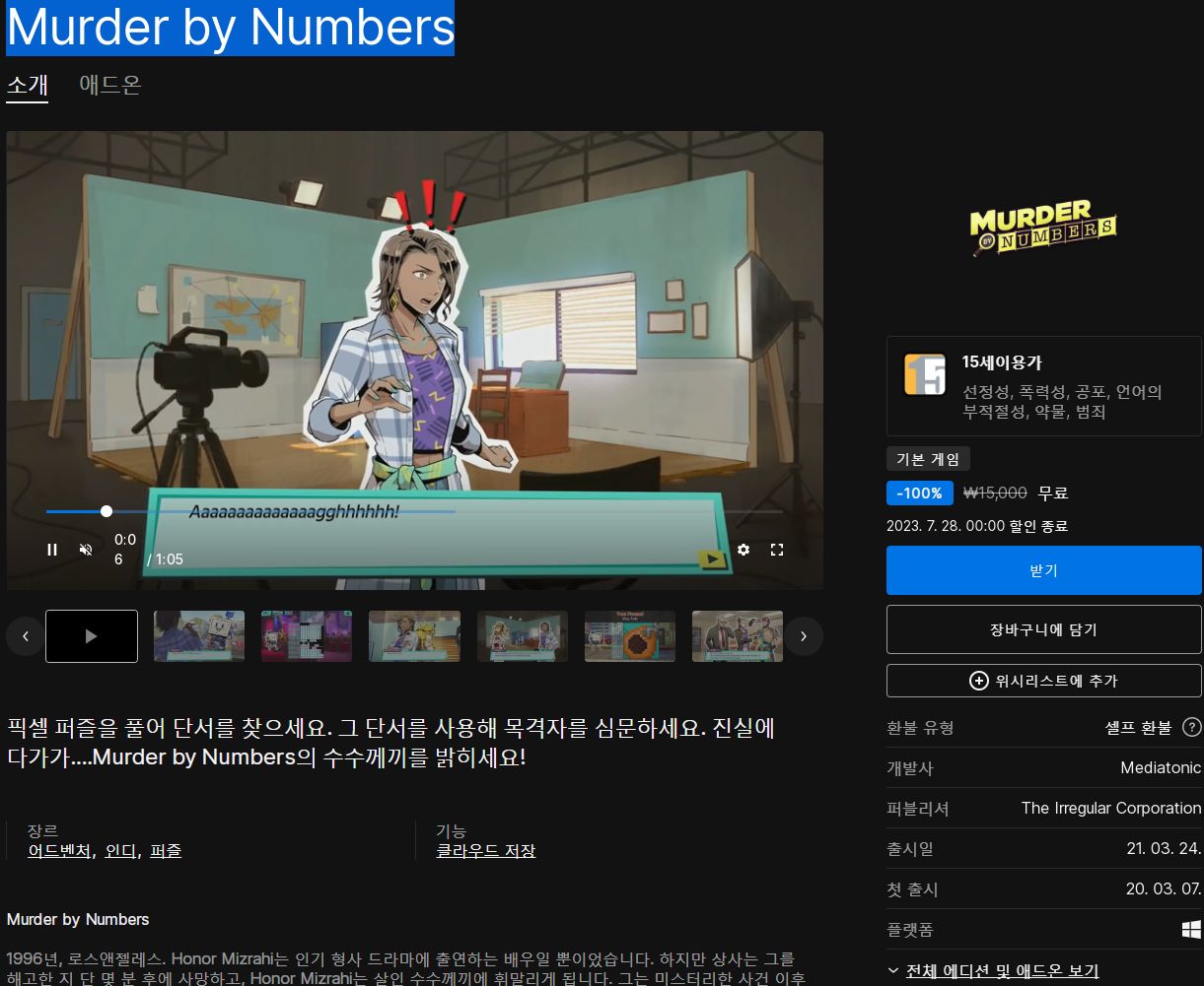 (에픽게임즈 무료게임) Murder by Numbers 본문