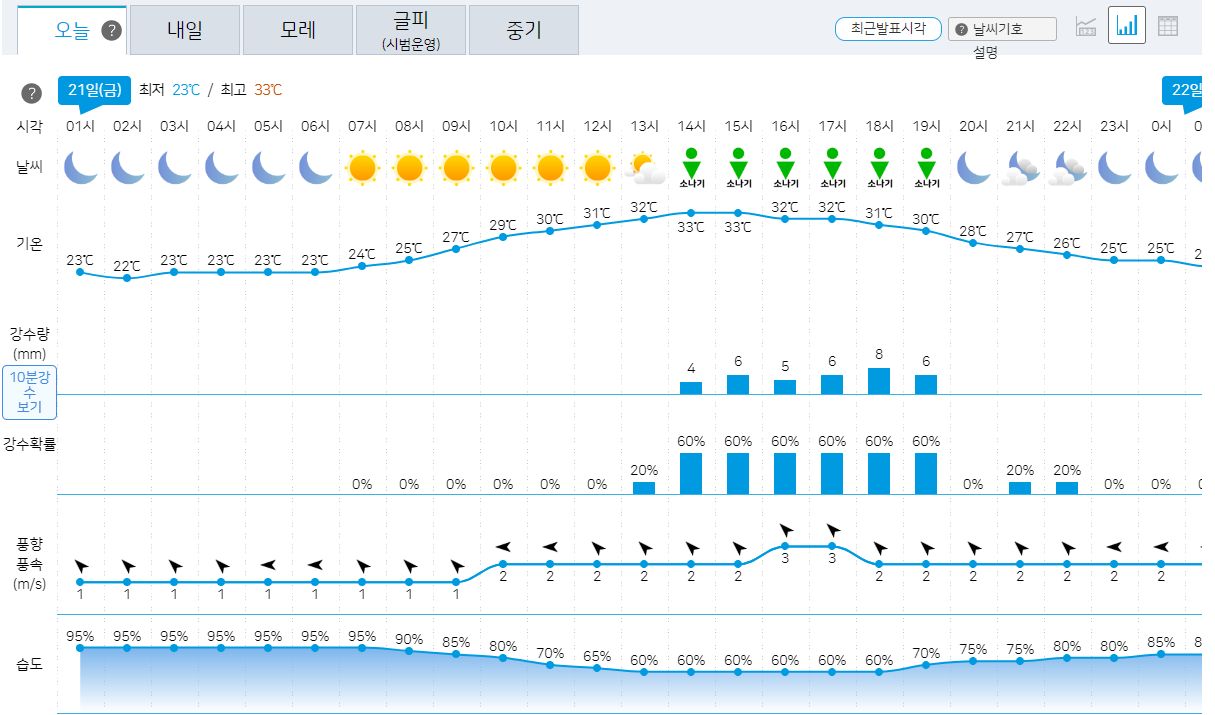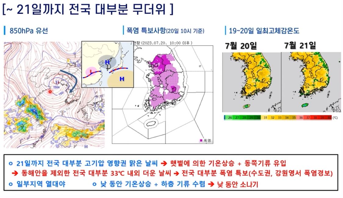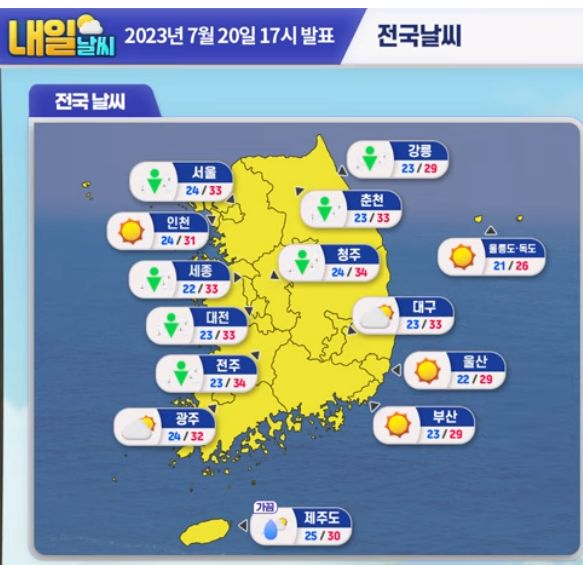 2023.7.21.금.~7.30.일. 서울/대전 일기예보: 폭염 속 주말 다시 비 본문