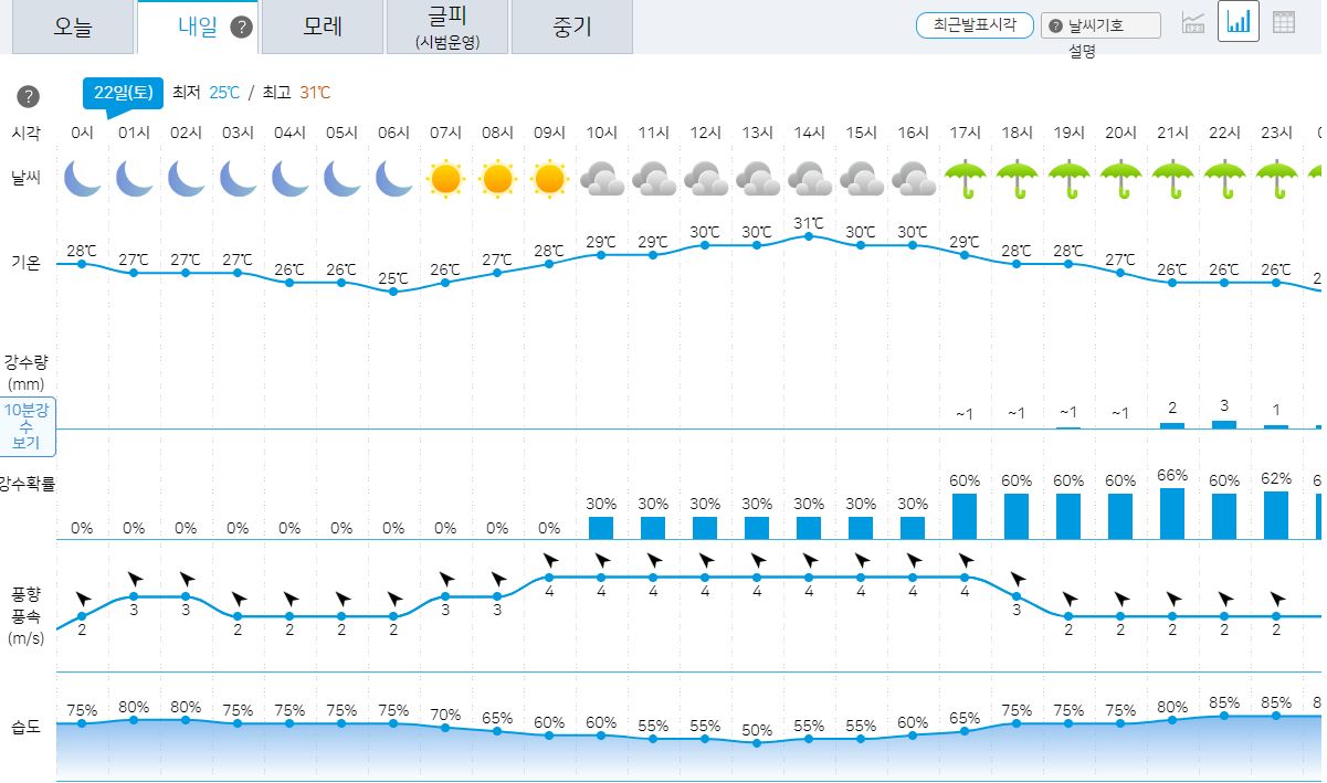 대전 일기예보 7.21~7.30