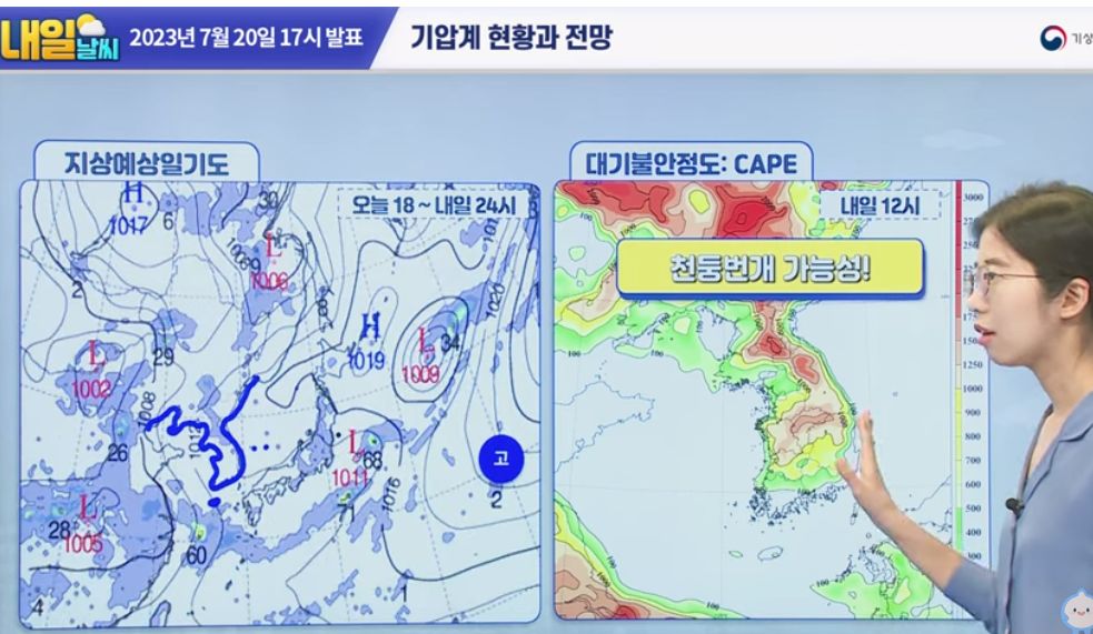 [내일날씨] 무더위 계속되며, 전국 내륙 곳곳에 소나기 예상됩니다. 7월 20일 17시 기준
