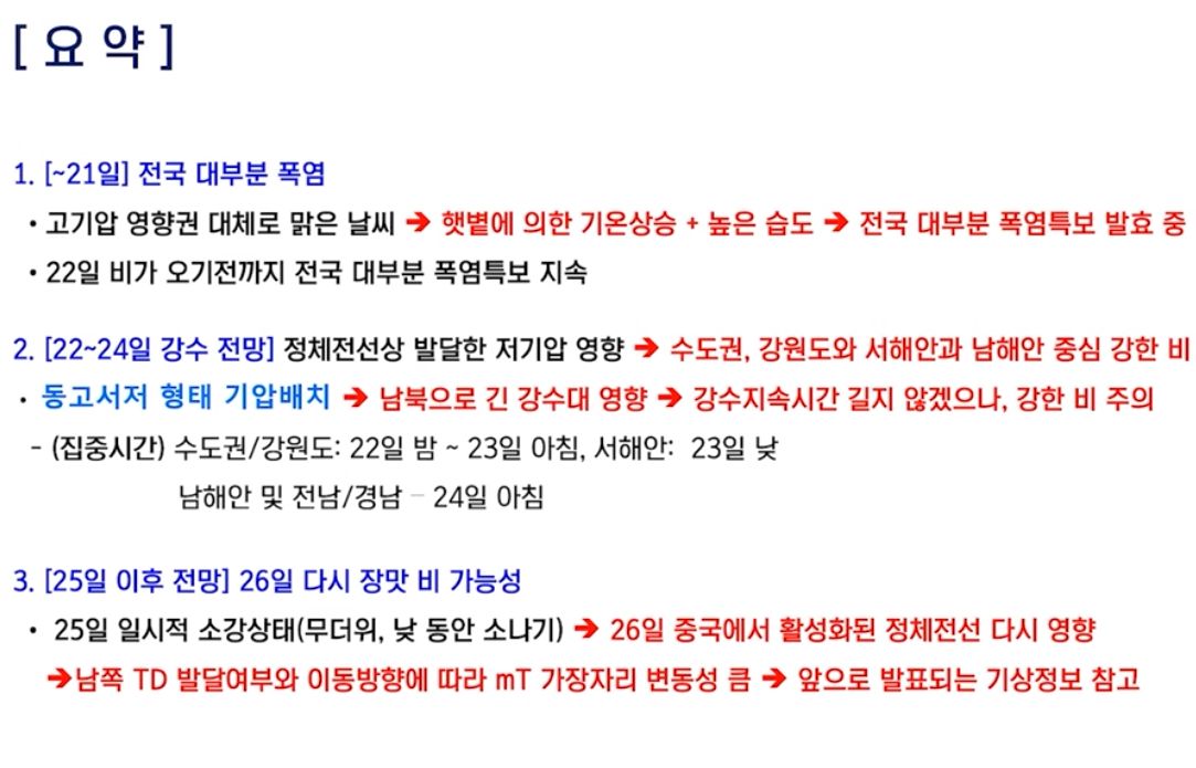 [기상청 브리핑] 폭염경보 발효 지역은 어디? 주말 다시 전국 장맛비 내린다!
