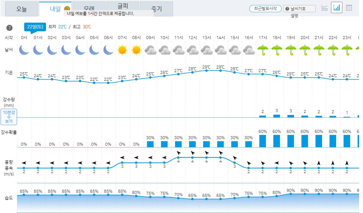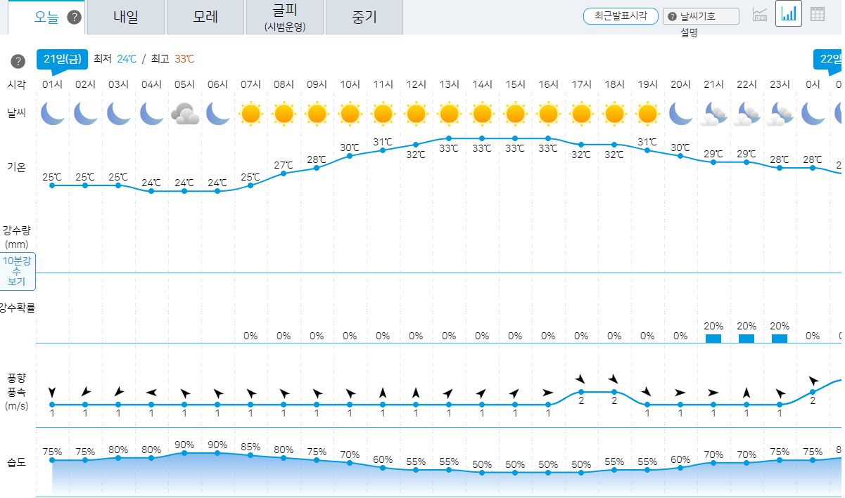 서울 일기예보 7.21~7.30