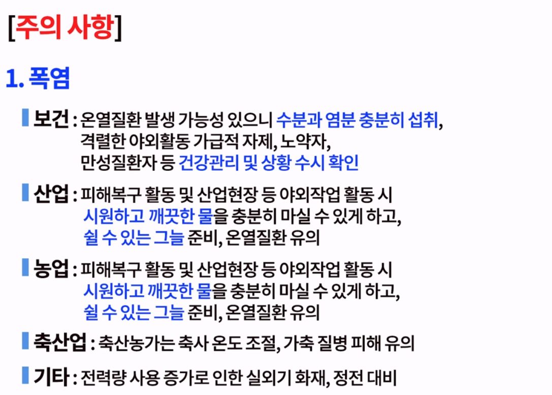 | 폭염 (기상청 블로그), 온열질환 (서울아산병원, 질병관리청), 온열질환 예방가이드(고용노동부) (0) | 2023.07.19 |