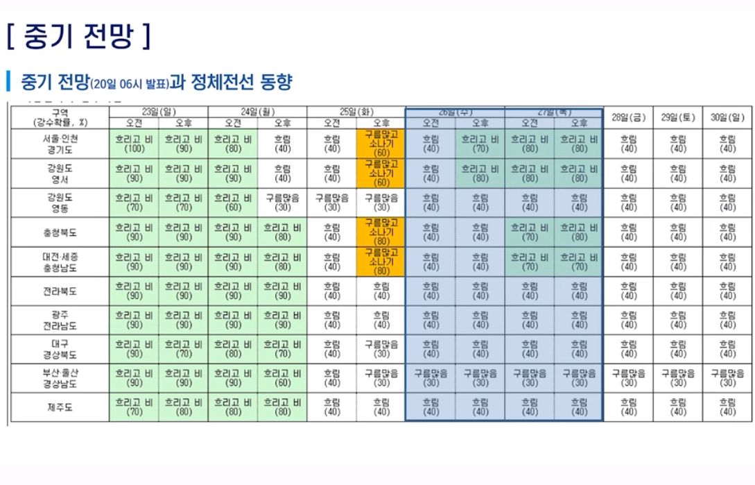 장마는 아직 끝나지 않았습니다. 주말지나며 다시 장마전선이 올라오며 비가 많이 올 것.