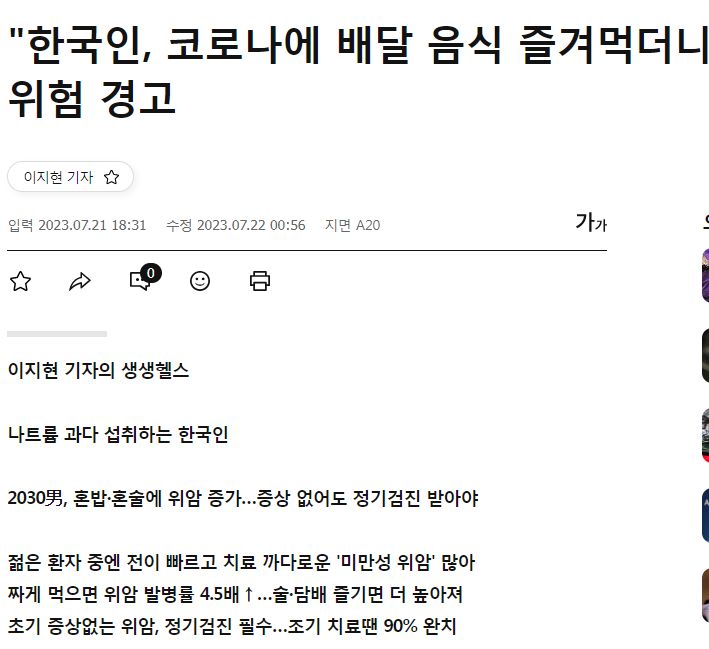 ㅡ 암의 원인은 다양하지만, 위암만 보면 짠 음식과 흡연이 독보적.[각주:1] 그 외 유명한 발암요소로 햄, 소시지, 훈제식품, 어묵류 등 육가공식품에 색깔을 내고 미생물번식을 막으려고 넣는 아질산염.