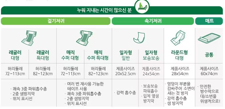 그리고 그 밑에 기저귀 종류 설명이 있습니다.