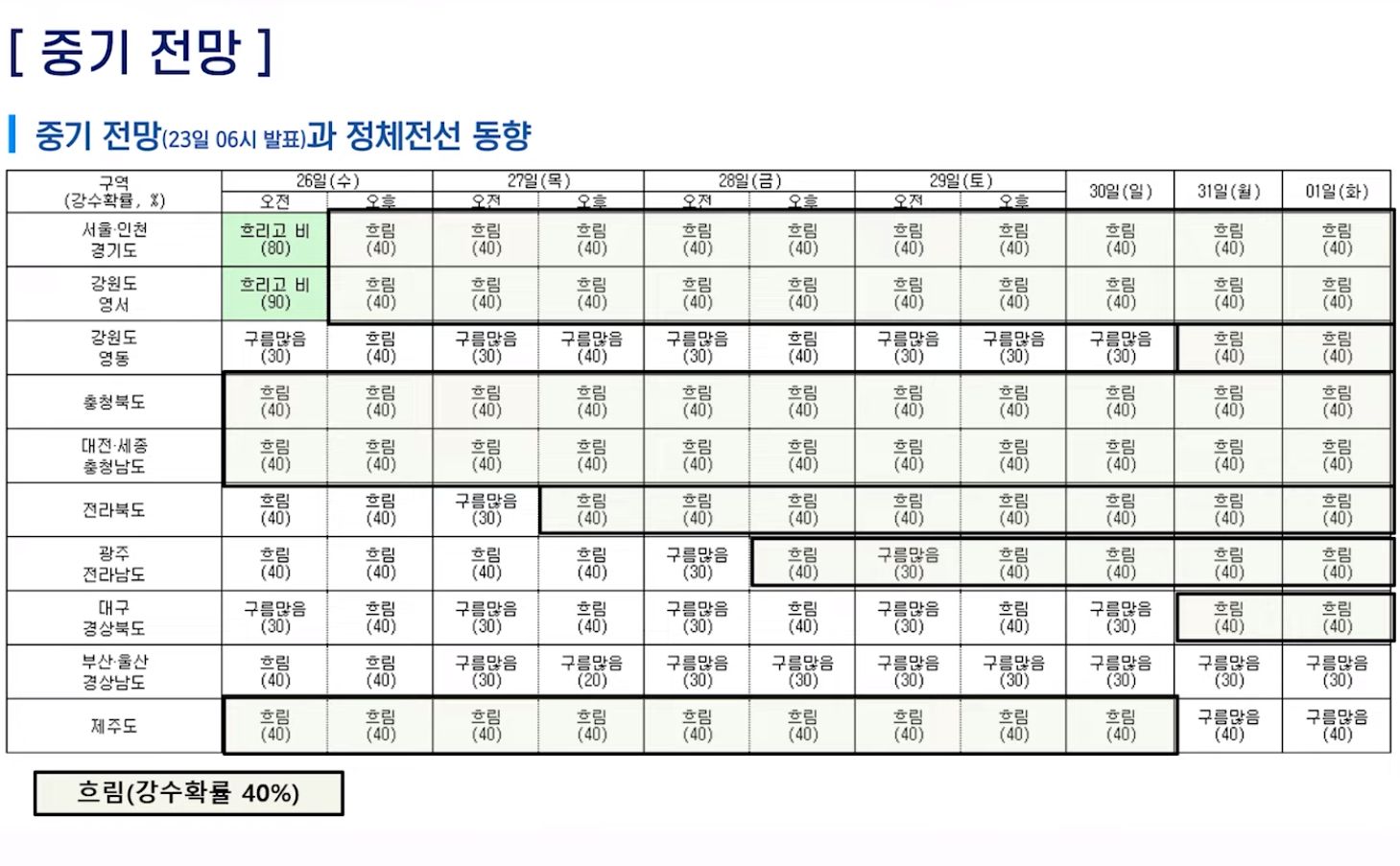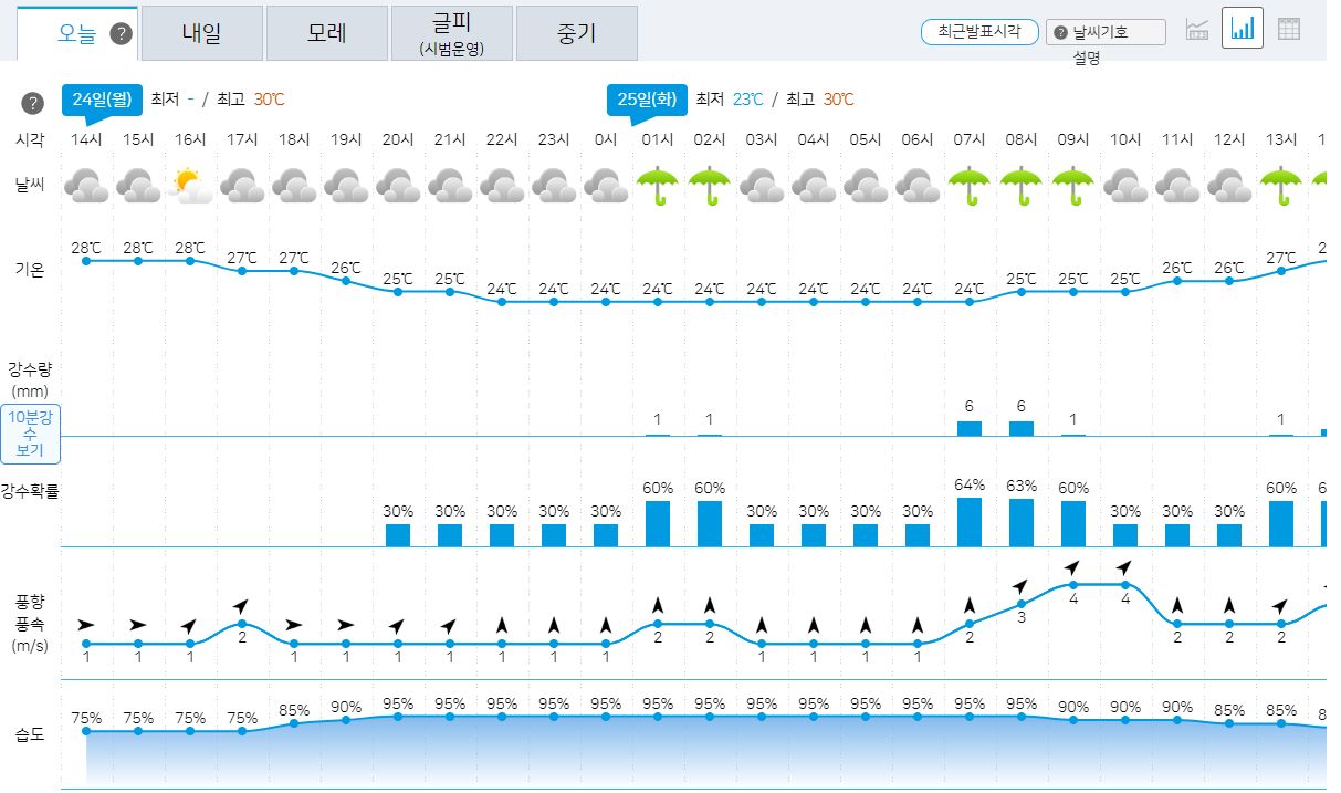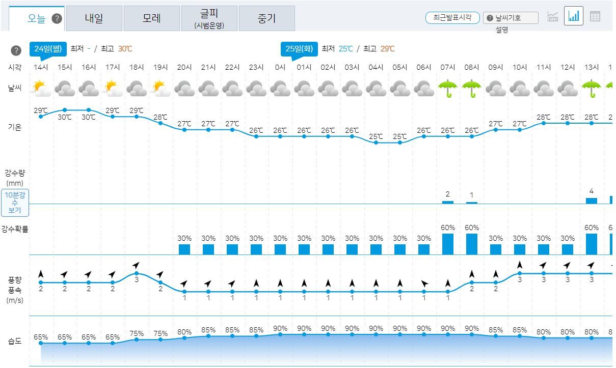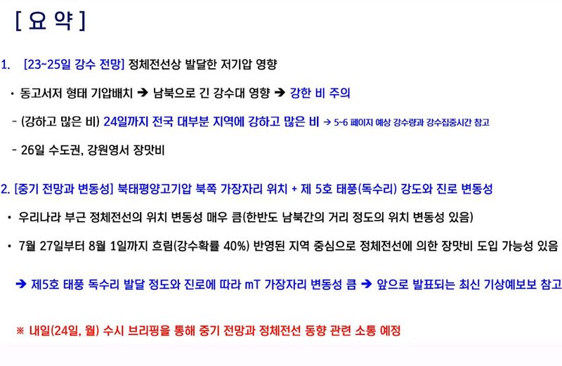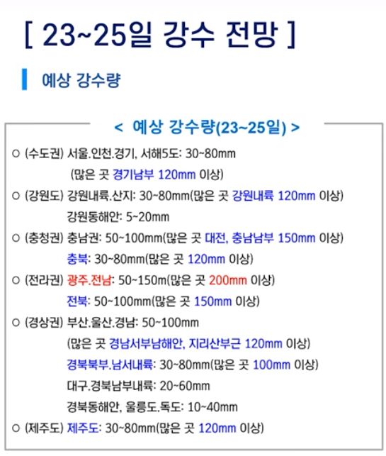 7.24.월 ~ 8.3.목. 서울, 대전 일기예보: 24~25일까지는 전국 대부분 지역에 비 본문