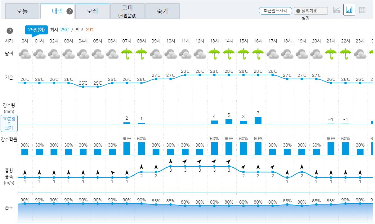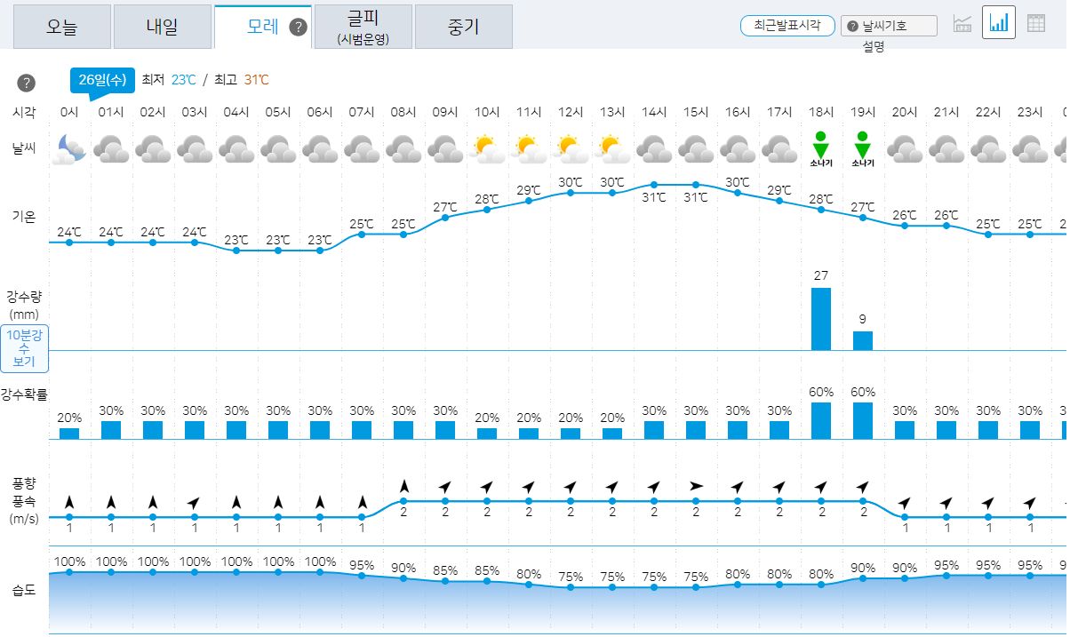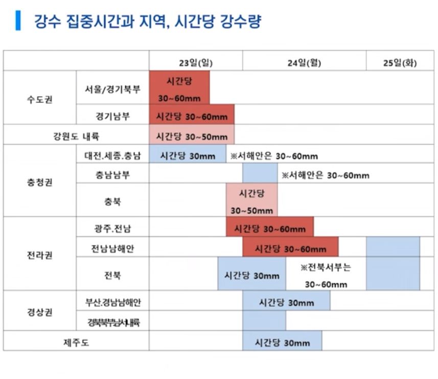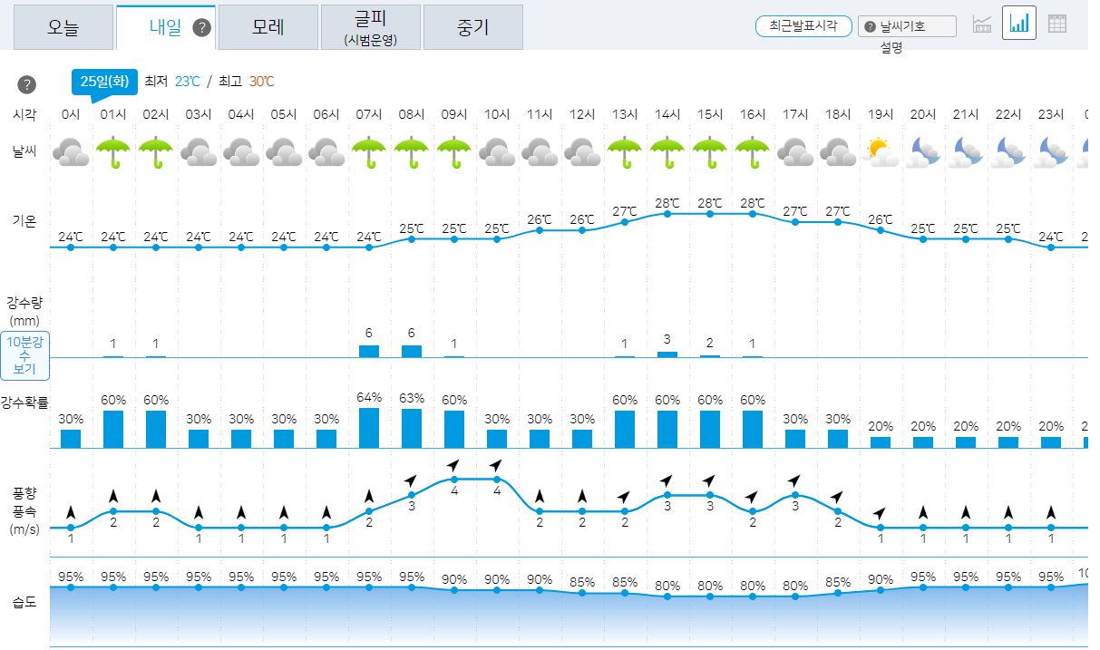 7.24.월 ~ 8.3.목. 서울, 대전 일기예보: 24~25일까지는 전국 대부분 지역에 비 본문