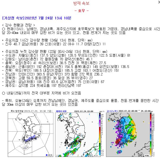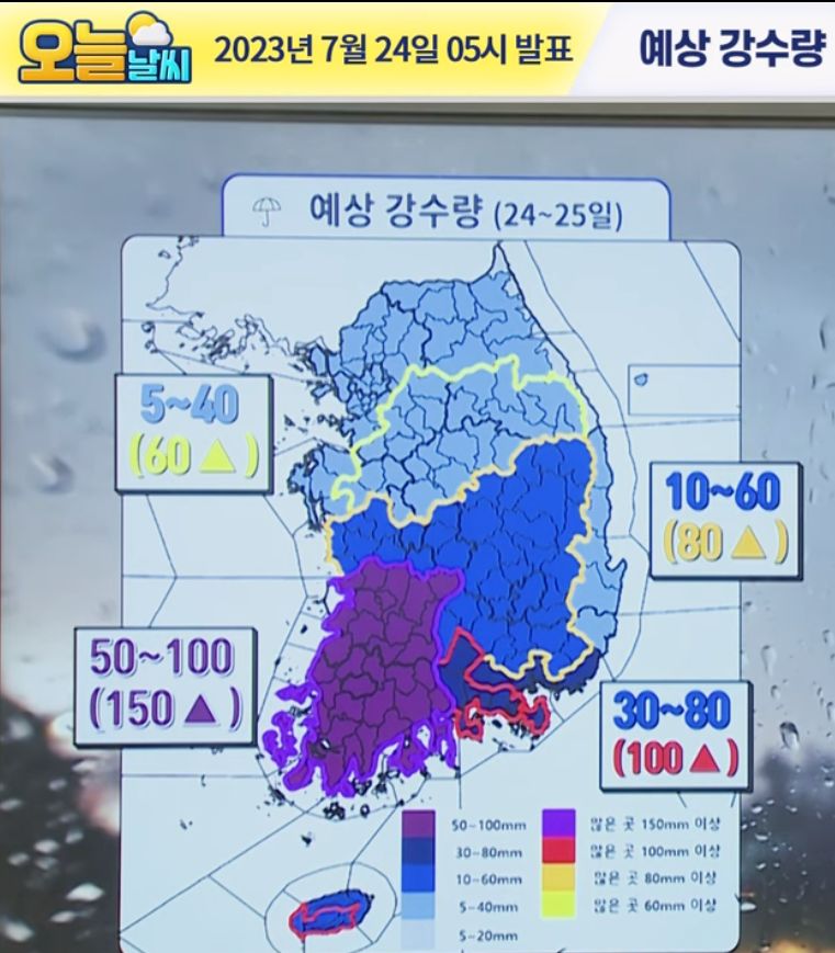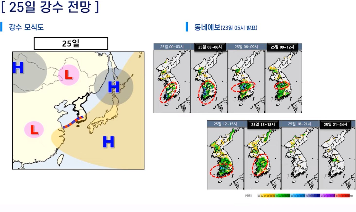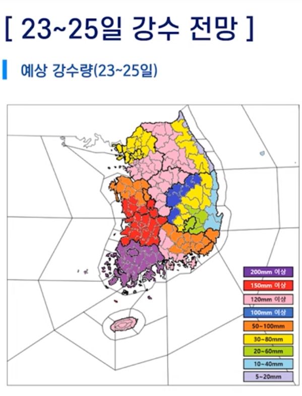 7.24~7.25 전국 예상 강수량 (7.24. 05시 예보)