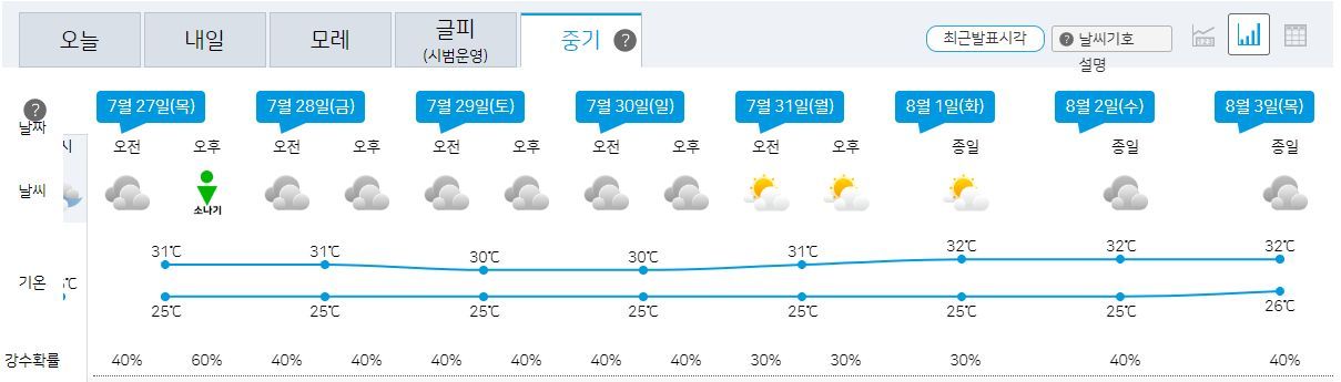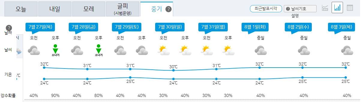 서울 7.24.월 ~ 8.3.목. 일기예보