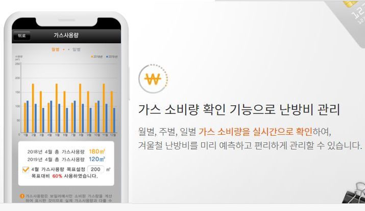 가스 사용량을 스마트폰 앱으로 조회할 수 있다.