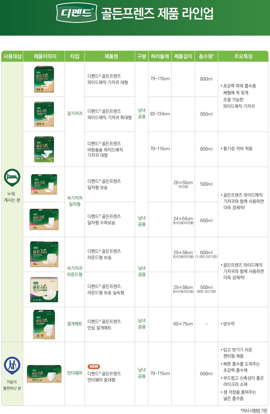 시설용 제품은 디펜드 골든프렌즈, 디펜드 A+에이플러스라는 이름으로 나옵니다.