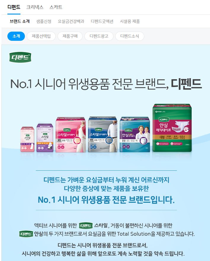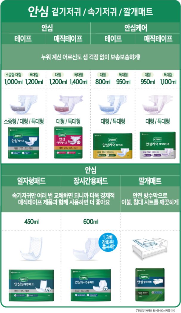 유한킴벌리의 성인용기저귀 제품목록 본문