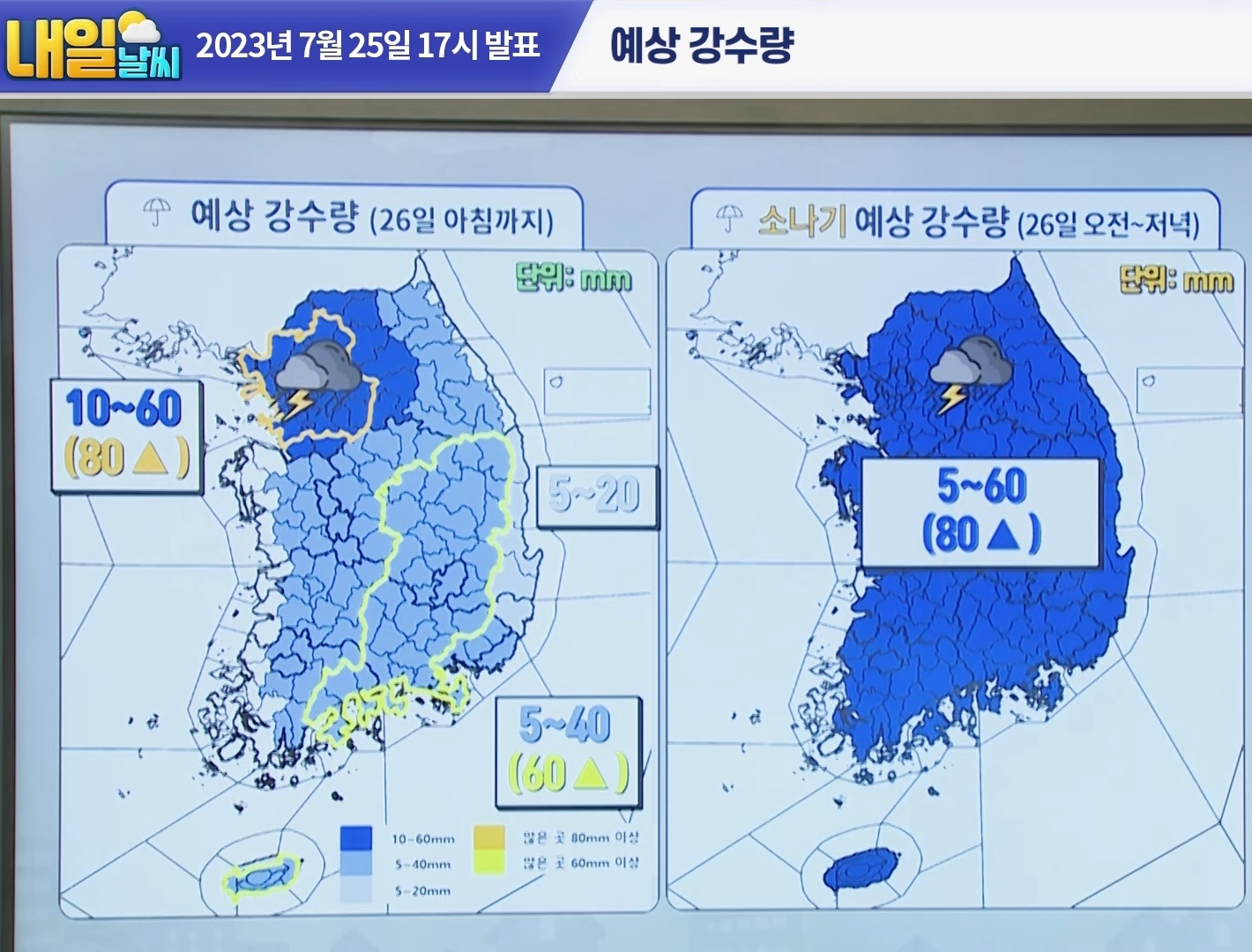 25일 저녁에 나온 26일 소나기예보.