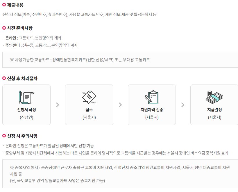 서울시 장애인 버스요금 지원, 지원금신청, 서울시버스, 서울시장애인