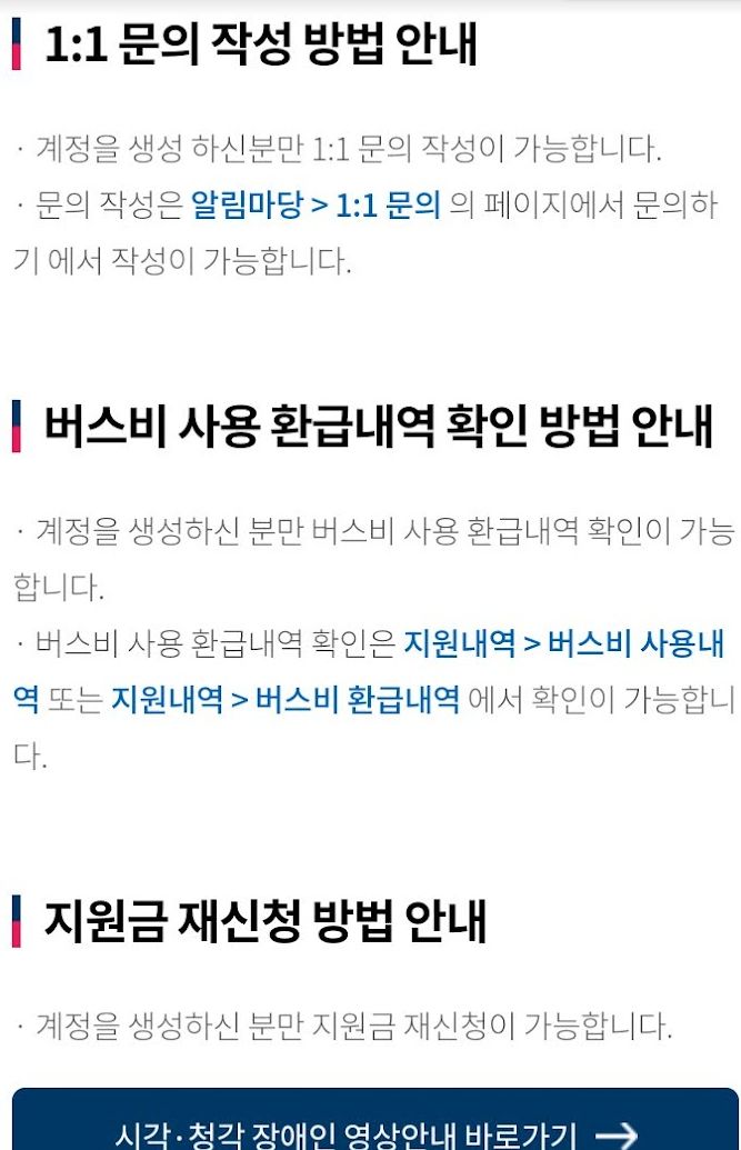지원내용: 장애인 1인당 버스요금 월 최대 5만원 지원