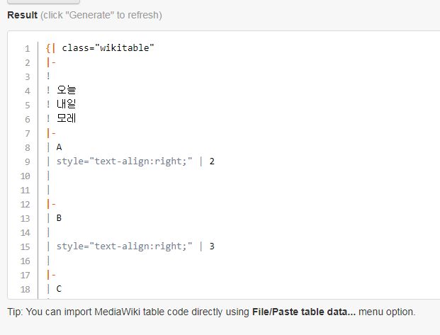 엑셀차트 일부를 복붙하면 html, latex, 마크다운, 미디어위키 코드나 txt 표를 생성하는 사이트 본문