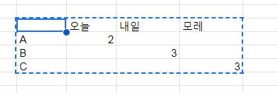 구글 문서도구, 스프레드시트에서, 아래와 같은 표를 복사해봅니다.