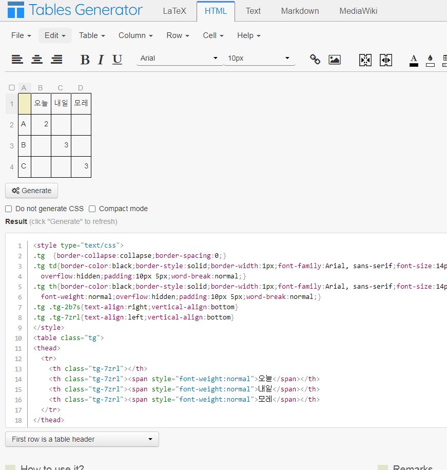 엑셀차트 일부를 복붙하면 html, latex, 마크다운, 미디어위키 코드나 txt 표를 생성하는 사이트 본문